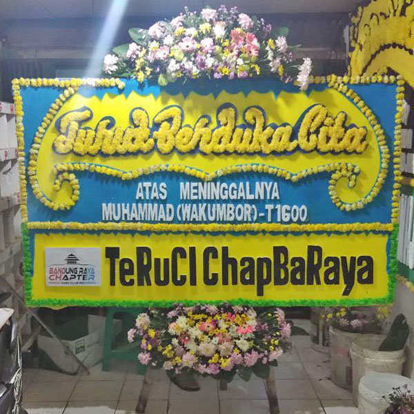 Bunga Papan Dukacita ucapan Turut Berdukacita, Ukuran 2x1,25, Bunga Atas Bawah (Bunga Standar Lokal)