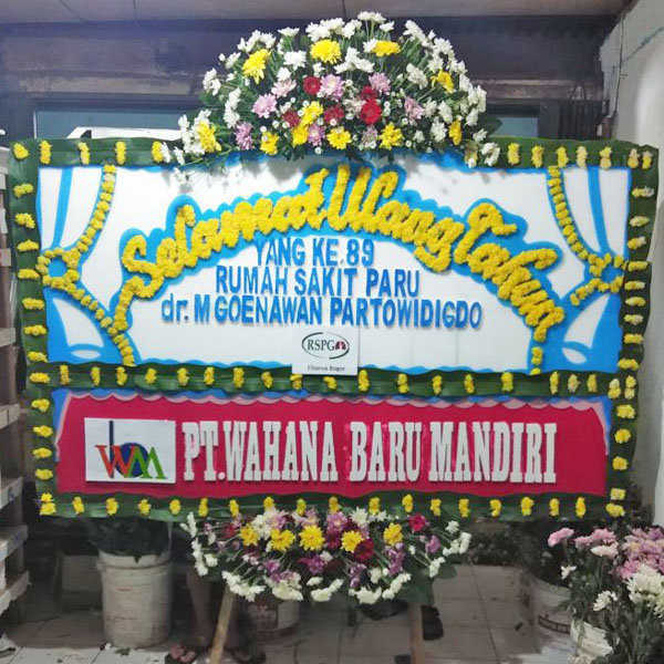 Bunga Papan Anniversary ucapan Selamat Ulang Tahun, Ukuran 2x1,25, Bunga Atas Bawah (Bunga Standar Lokal)