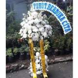 Bunga Standing Dukacita untuk ucapan turut berdukacita atau berbela sungkawa, terdiri dari bunga mawar dan bunga standar lainnya, standing dari besi.